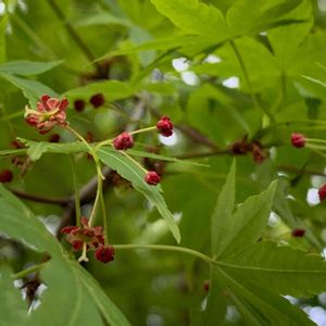 モミジの花 紅葉の花、今まで注目した事がなくて、改めてじっくり見ました。 赤い花弁から白い雄蕊が飛び出しています。 5月頃によくか(翼果)という赤い羽根みたいな実ができて、秋に茶色く色づいて12月頃、よくかは、風に飛ばされ竹トンボみたいに遠くへ運ばれます。子孫を増やす為の様々な工夫。植物の力、凄い!