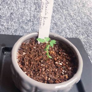 やったー😆🎶 芽が出た~🎵 数年越しで探して やっと見つけた種 発芽してくれて良かったー😆 その名もアカシア・コア ハワイの固有種のアカシアで ウクレレなどの木材で有名なやつー😁 ハワイとかオーストラリアとかさ ちょっとマイナーなのだと ホントに流通してないから探してたのよー😄 (島から出せないのだろうか…) (海外の人も日本のマイナー種は きっと入手しにくいんだろうなぁ…) 大好きな羽状複葉から 成長すると三日月型の葉になるらしい (ユーカリみたいな感じかなぁ) うまく大きくなってくれよ~🎵