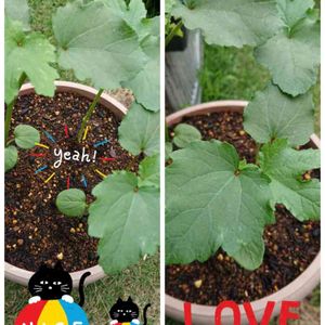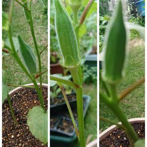 『オクラ』 オクラは気温が高くないと 中々成長しません😅 種まきの時も安定しない気温でしたので発芽も少し遅れましたがやっとここまで成長✌️ 夏野菜なのでこれからぐんぐん 背が伸びてきます👍 種類にもよりますがおおよそ 120〜150cmくらいになります‼️ お花がハイビスカス🌺のような可愛い💠です‼️ これから挑戦する方に簡単に アドバイスです‼️ まず普通のオクラは背が高いですので覚えていてね✌️ プランターでの栽培です‼️ 【準備するもの】 ポット苗 野菜ようの培養土 プランターは 横30cm以上×深さ30cm以上 支柱150〜180cm 【植え付け】 培養土を入れます❗ 鉢植え2〜3cmのウォータースペースは取ります❗ 鉢底石を入れてから培養土を入れても良いですよ👌 最初にたっぷりの水をあげます❗下から流れるまで✌️ 軽く上から土を押さえます❗ 苗を植えます❗ 【注意】通常購入した場合は 3〜4本入っていると思います‼️この苗は出来るだけバラバラにせず軽くほぐして真ん中をあける程度にします👍 支柱が真ん中に刺せる位✌️ 写真左は真ん中が空いています✌️これは種から育てて植えたものなので空けています👍 植え付けたらたっぷり水をやさしくあげます❗ 花が咲いてきたら肥料をあげます❗この頃から2週間に1度の追肥をしてください❗液体で良いですよ✌️ 開花から3〜4日で収穫できます❗大きさでは6〜7cm❕❕ これ以上、大きくすると硬くなり食べられなくなるので収穫は毎日、チェックしてね‼️ 【追記】 花が咲き実が付いてきたら その下の下(ひとつ飛ばした葉)は取り除いても良いですよ👌 葉っぱが重なると蒸れの原因になり病気の原因に繋がります❗ 【害虫、病気】 若い頃はアブラムシに注意😅 全体にカメムシも注意😅 案外強いですがうどん粉病にも気を付けてね‼️ 8月頃になると後半戦です‼️ この頃から曲がりオクラが出来たりイボのようなポツポツが出来たりしますがこれは病気では無いので大きささえ守れば食べられます🤩 さぁチャレンジしたくなりましたか⁉️(笑) 私はオクラは🔰初心者向きだと思います‼️ 私がちゃんと出来るかな⁉️ いつも放置が多いからな〜😨 毎朝、たっぷりの水をあげてね👍肥料も忘れずにね👍 ではでは 頑張って見てください‼️ ★右の写真いらなかった★(笑)