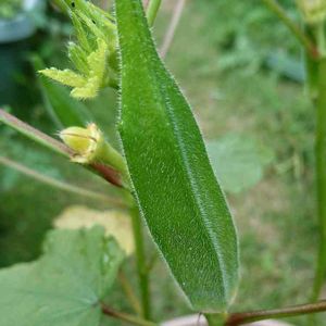 梅雨の雨水をたっぷり吸い込んで、すこーしずつ膨らんできたオクラの花の蕾。