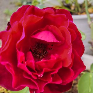 雨に濡れた、バラ🌹 オマージュアバルバラ 昨日から、よく降りました〜☔️ 庭が潤いました。 ちょっと寒いけどね😨 また、フリースを引っ張り出して着ています😆