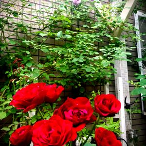 バラ オマージュ・ア・バルバラ 開花 冬に結構切り詰めたのに モリモリ伸びて 蕾がたくさん ベルベットのような花びらがかわいいずっと咲いてくれるとても強いコ