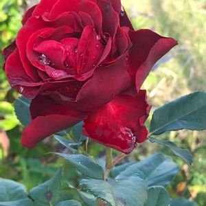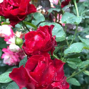 オマージュアバルバラ 毎日毎日雨で雨粒が付いたお花しか撮れません💦 そして実物はこの3倍くらい美しいのですが写真🤳にすると 上手く伝えられません😅 雨なんか吹っ飛ばす元気なバラです🌹 挿し木にした苗をたくさんの人に育ててもらっています 最初にお迎えした思い入れの強いバラです