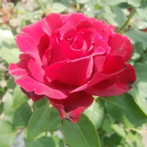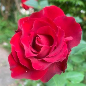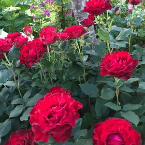 666pic目は私のファーストローズ オーメンではなくオマージュです オマージュアバルバラ🌹 フランス デルバールの薔薇です 赤い薔薇が欲しくて店員さんのオススメで求めたものです この薔薇がなければ我が家の庭はバラ庭になっていなかったかもしれません 月曜日の暴風雨でも全く何事も無かったかのように凛と咲いていました 遅咲きで最初の一輪なのでもう少し待つと房咲きがアップできると思います 今年は珍しくバラゾウムシを一手に引き受けてくれたので他のバラは最小限の被害で済みました なので例年のような房咲きは期待できません ゴメンね💦