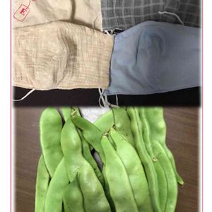 今日も一日お疲れ様でした😊 こちらはまだ梅雨明けしていませんがもうすぐのようです❣️ 梅雨明けたら夏本番☀️☀️☀️ 熱中症対策のひとつに接触冷感の生地で夏用マスクを作りました😷 離れたところに住んでいる義両親に明日届けに行こうと思っています🎶 畑で獲れたモロッコインゲンと一緒に。。