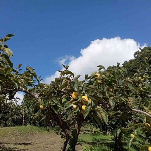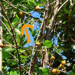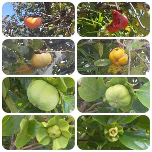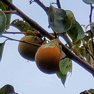 今日の庭 芭蕉ジャングルの裏手で 見つけた2cm程の豆柿の木に ❗普通サイズの柿が数個⁉️ よく見たら別の木が並んでいました GSup5本目の柿の木です🟠 先が尖っているので 筆柿❓️なのかな⁉️ ふっくらしてるので 干し柿にする渋柿❓️かな❓️