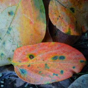 柿の葉 柿の葉🍂が紅葉して落ちてきてます。 渋柿の実も、すべて落下。虫食いでした。