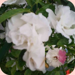 おはようございます 薔薇の3連アーチにクレマチス白万重とサマースノーが 一緒に咲いてくれました💮🌿 サマースノーは小さな花がブーケ咲きに 波打つ花弁で時々ピンク色が差し色で入る事も💗 枝変わりでアーチの上にピンクサマースノーも3年前から 咲くようになりました🎶 この3連アーチは薔薇が4種類、クレマチスが3種類誘引して 有るので、また紹介したいと思います(*ˊ˘ˋ*)。♪:*°