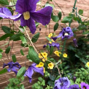 過去pic ビチセラ系のクレマチス 名前忘れ・・ 思い出した! エリオステモン🤗 ビチセラとインテグリフォリアの交配種でした~ 今はもういなくて寂しい🥹 すごくきれーだったの〜😭