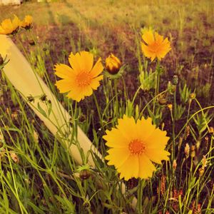 こんなにビビットカラー💛 可愛いお花なのに… "外来種"危険⚠️なのだそうです🌼 コンクリート壁の上にたくさん咲いています🌼🌼🌼