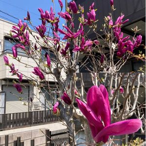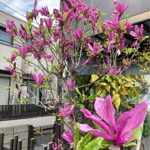 今日のお花 ⁑ モクレン(木蓮) シモクレン(紫木蓮)×4 💜 ハクモクレン(白木蓮) 🤍 ⚫︎⚪︎⚪︎⚪︎⚪︎