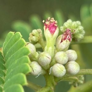 近所でネムノキぷち観察日記❣ ①6/6ネムノキの蕾が弾けて赤い雄しべが顔を出す。花弁は無いよね?でも、萼片から飛び出た黄緑の部分!この超目立たない部分が花弁でした ②2日後、雄しべの花糸がぴんぴんに!私達が愛でるのはこの赤い雄しべ。 ③10日後、木全体が見頃に ④萎れた花いただきました〰️雌しべはどこに?沢山の雄しべの間からピンと伸びた白い糸、これが雌しべです ⑤サンプルをばらしました。1個の花のように見えた花は15個の花の集まりでした メモ📝 ■分布は本州四国九州の山地、河原 ■ネムノキの花弁は5枚、基部は合着 ■ネムノキの小花は通常10〜20個ある ■写真②の花序真ん中の白っぽい小花が頂生花とよばれるもの。蜜はこの小花にしか存在しない