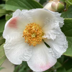 「ヒメシャラ」 ツバキ科シャラノキ属 白花花びらの花芯部は黄色でコントラストが美しい 花言葉 幸運 美しい人 咲くやこの花館高山植物室6/20