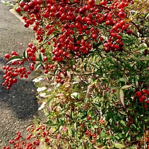 自然教育園の真っ赤に色付いたマンリョウの実、可愛いです💕