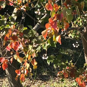 ナンキンハゼ(かな?笑)っ! 紅葉した葉に白いつぶつぶの実が可愛いです😍💕 天気のいい日は植物が綺麗ですね♪