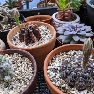 子持ち蓮華さんは元気モリモリ💪 他のはダメになりそう😨 下葉がジュレてきている😭 こうなるとどうしょうもできない、 冷房の効いた部屋に置いてもダメ😭 仕方ないシカタナイ😰