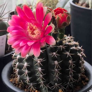 緋花玉さん咲きました!😊 って言うか咲いて、枯れて、蕾出して、でワチャワチ感のクセが強い‼︎💦 そんなに頑張って大丈夫なのかなぁ⁈😅 一か月以上前の花殻がまだポロリしないし…君からは目が離せないよ💦🌵
