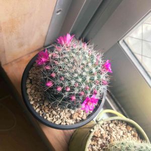 これも、花色違いっぽいサボテンたち。 マミラリアの月影丸?と思ってる2株ですが、蕾は違う色でした✨