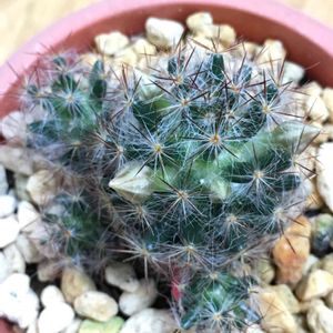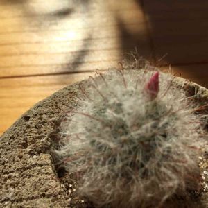 毎朝慌ただしく室内からベランダのビニール温室に出し、毎日夕方暗くなってから室内に戻していたサボテン多肉たち。 じっくり眺める暇もなかったのだけど、今朝気づきました。 マミラリア白鳥に蕾付いてる〜〜♡ 調子が良いようには見えなかったので今年は花は咲かないかもと思ってたので、うれしい♡
