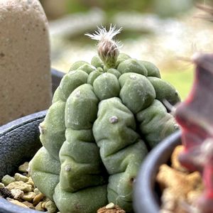 咲きました~ マルハゲオツム もといマルハケオモト😄😆 ひとつだけ‼️ モフモフに見えるけどけっこうモフモフだった😵触ってみた👍