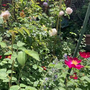 ORヴィオラセ こんなによく茂っているのに 今年は花は数輪しか咲かない 模様…💧 花の色は変だったし 去年はアーチに誘引していましたが 台風でアーチと共に折れてしまい、 ここまで復活はしたけれど…💧 一季咲きのつる薔薇は気難しい ところが有りますね 剪定の時期にかなり左右され ますね 冬の気候も変だったし 来年はどうだろうか? これもまた勉強ですね(*´ー`*)
