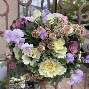 葉牡丹 ビオラ プリムラなどのハンギングです