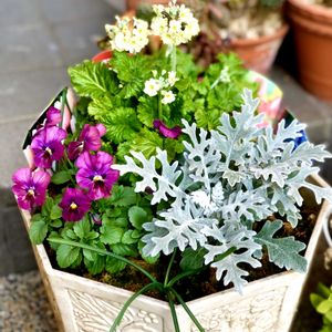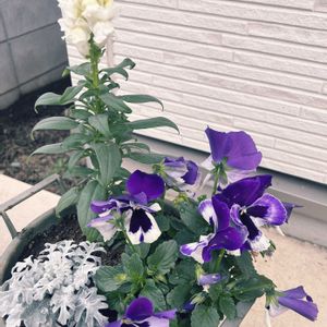 おはようございます‧✧̣̥̇‧ 今日のお花💠パンジー 昨日我が家の仲間入りのお花たち♡ 1️⃣2️⃣2ポット💜💟パンジー 3️⃣ガーベラ🤍 ピンクのジュリアンさん半額でした 4️⃣寄せ植えして🌿🪴😊💜💟✨5️⃣パンジー
