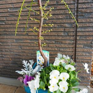 雨上がりでぽかぽか天気です 2日の初売りで垂れ梅を買いました 霧吹きで加湿してますが 中々蕾が膨らみません