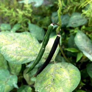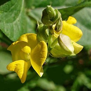 サヤを2本ぶら下げて、 不思議な花の形…😗
