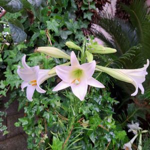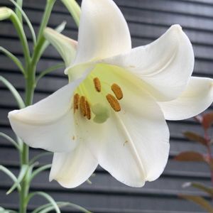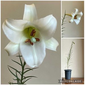 高砂百合 以前にもUPしましたが、我が家の種から育てて2年目のタカサゴユリ。 ほぼ終わりかけてる中、キレイに咲いてくれてるので再登場です🤗 まださらにちっちゃな蕾が2つ程残ってるかな❓ 1年目の去年は1つだけの開花だったけど、2年目の今年はたくさん咲いてくれました✌️