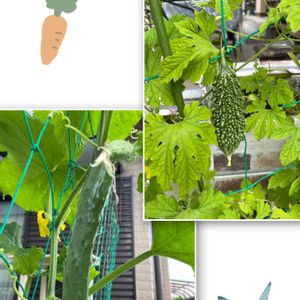 メダカの日除け用に植えたきゅうりとゴーヤ🥒