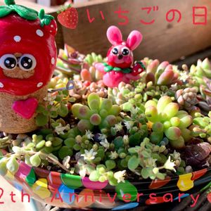 15ちゃんの 🏷毎月15日はいちごの日 今年最後ですね〜🥳🎶 かっきーちゃんに頂いた、お家木箱に植えた乙女ちゃんが、 可愛くなって来たので📸 いちごちゃんにお願いして作って頂いた、 コルクベリーちゃんが初参加💖🎶 いちごちゃん、忙しい中ありがとう〜🤗💓