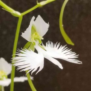 【サギソウ】 本来7〜8月に咲く花ですが、姫路市立温室植物園では、もう開花させていました。 〜 姫路市では、市のシンボルである姫路城の別名「白鷺城(シラサギジョウ)」にふさわしい花として、昭和41年8月にサギソウを『姫路市花』として制定しました。 真っ白な「サギ」が飛んでる姿に見えませんか?