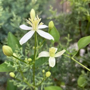 ⌘クレマチス 仙人草 今年はコニファーに巻き付いて咲きました〜