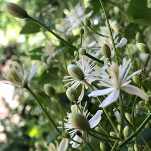庭の仙人草が、咲き始めました♡ 今年は、虫に葉っぱ🌿を食べられていて、花が少なめです🤣