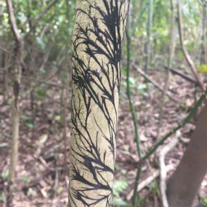 山で発見、芸術作🙀 寄生植物の痕跡か、台木はヤブツバキ。