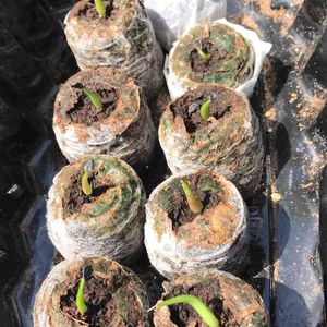 おはようございます☀ ごめんなさい あまり綺麗な画像ではありません が、4月29日に撒いた アガペ チタノタブルー の今です。 ネット検索では チタノタブルーは発芽率が20% という記事もありましたが、なんと 10個中9個の芽がでました❣️ タネ床が良かったのか トレイが良かったのか 気温の上昇を待ったのが良かったのか きっと ラ○マでポチった種がよかったんでしょうね💕 実はせっかちな私は 水やりの時 種を飛ばしてしまったらしく、トレイの中で 芽をだして ビックリして拾い上げたりしました。 お恥ずかしいのですが、もし何かの参考になればとお話しました。 今は朝日にだけ当てています。 これから芽に縦線が出てくるらしいです🌱 楽しみ楽しみ🥰