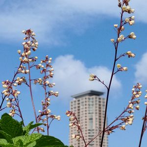 おはよう〜ございます(#^.^#)☀ 気持ちの良い朝 ヒューケラさんのお花が背高く伸びてま〜す。 手前のミントちゃんはモリモリ🌿🌿サッーと触ると爽やかな香りで😍癒やされちゃいますね。