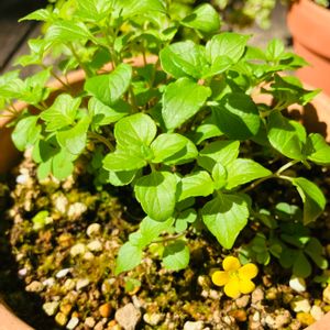 今年もカラミンサネペタの鉢にカタバミの花が咲きました🌼。