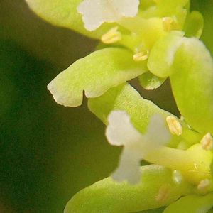 先日ツルウメモドキの雄花♪を投稿しました しっかりと花を見た事がなく雄花雌花の花が雌雄異株であることも知らず 今年こそはちゃんと見ようと秋に実のなっていた道へ。🤔 かわいい緑の花 白い雌しべがクローバー♣のように突き出ています そして花びら近くには雄しべも見て取れますがコレはどうしたものかわかりません?🤔