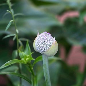 「アリウム ギガンチューム」 すこーしずつ伸びてきてた花芽、ついにパカッと割れて蕾が見えてきました😆 うっすら紫色に色付いた葱坊主、あと少しで開花です🌟