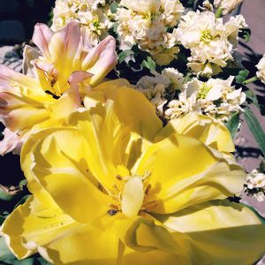 今週のお花が届きました♪ 百合咲きチューリップ 菜の花 花ぜんまい 外は一昨日からの寒波で雪景色だけど、春の庭に居る気分🌷 もうすぐ春ですね☺️