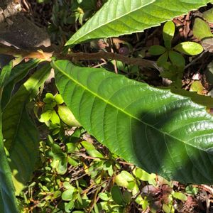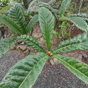 少し前から出てきました。 ビワの葉に似てるような気もするのですが、何かわかりません。 成長がとてもゆっくりな気がします。