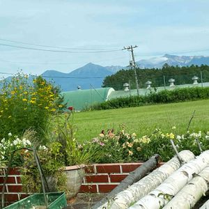 遠くに見える大雪連峰が綺麗❣️ 虹が綺麗❣️ チームお嬢様A.B.C 綺麗な夕焼けに 感激の秘密基地の夕暮れ時🎶