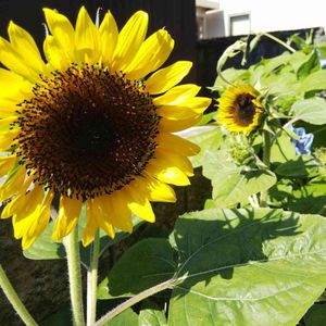 今日のお花『ひまわり🌻』 太陽の方を向く『向日葵🌻』 なのに手前の子は北側を向いてます。…きっとリビング窓に反射された光に向いているかと…。 家の方を向いてくれるので、親孝行な子だと思ってます😄