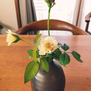 もう一枚は開花をずっ〜〜〜と楽しみにしていた桜衣🌸🌿✨ 育ててる人少ないのかあんまりネットでも見かけなくて情報が少ないのよねぇ。。。ウケが悪い?色があまり‥なのかな? 株の足元から咲いてくれて花付き良し!ステム短めで強健で花持ちも良さそうで つるバラとしては優秀なスペックの子だと思うんだけど〜 京成さんも結構バァ〜〜ンと紹介してるのに、ネットにはあまり上がらず‥‥ でも気になって 生で見てみたい❣️と思っていたら、去年出会えた〜😍✨ 以前にカラジュピを買った かつてはバラに力を入れていたらしい うちからちょっと離れたホムセンで🎶 ボロボロで一本の棒みたいな葉が一つもない苗だったけど😂💦 なんと7割引だったからね‼️ ホクホクと連れ帰り🐾 春にはツボミが結構あがって楽しみにしていたのに、ベランダでは上手く咲かず‥😭 第2ガーデンに移植したらブワッて勢いづきました🌿🌿 はぁ〜꒰ღ˘◡︎˘ற꒱✯︎*✨💕やっぱり可愛い雰囲気👍🏻💗 房がみんな開いたらどんな感じかなあ〜✨ ワクワク😆🎵