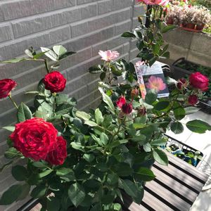 鉢植えバラコレクション🌹切り花のバラ以外、共通点は全て強香のバラです。ただ、美咲と今回間に合わなかったジャーミストンゴールドは本当に強香なのかは未だ不明。咲くのが遅れてるダブル・ディライトも含めると11種11鉢以上のバラを育ててます。(挿し木バラも含めると15種)いつの間にか柑橘類よりも数を増やしてしまった💦 ちなみに一番のお気に入りはパパメイアンです。 真紅からワインレッドに変化するビロード調の花弁に非常に強いダマスクの香り、剣弁高芯咲きの大輪で生け花にも最適な完璧なバラ。(ただし最強のトゲ付き)補足で桃香は花瓶に3輪生けると、その香りの強さで酔います。絶対に。