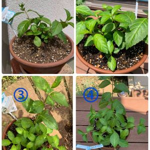今朝投稿したGreen Snap フォローアップキャンペーンで当選したPW新品種3品種セットを植え替えました。息子が地元のホームセンターに今年就職し、最近園芸担当に任命されたそうです。鉢と土を買いに行くと棚を見ながら在庫確認か、先輩に聞きながら行っていました。見つからないように甥っ子とそっと買って帰りました。