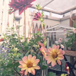 ダリアちゃん三色寄せ 茎が折れなくて良かった😅
