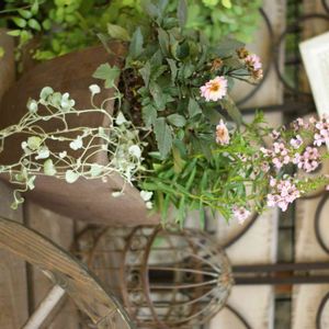 黒葉にピンクのダリアをディコンドラが引き立てて。